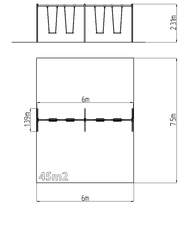 | Fallschutzfläche: | Gummi oder Kies 45 m2 |