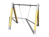 Diese Konstruktionen werden im Terrain durch feuerverzinkte Stahlpfostenträger verankert und anschließend im Beton befestigt. Somit wird der direkte Kontakt mit dem Boden vermieden. Die Schaukel wird mit Hilfe von verzinkten Ketten am Stahlträger aufgehängt. Sämtliche Verbindungselemente sind verzinkt oder aus Edelstahl.