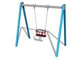 Die Tragkonstruktion der Schaukel besteht aus Konstruktionsstahl, die gegen Korrosion mit Zinkbeschichtung geschützt wird oder die Duplexbeschichtung mit Pulvereinbrennfarbe nach der RAL geschützt. Diese Tragkonstruktionen sind in die Betonfundamente verankert. Die gesamten Metallelemente sind auch verzinkt oder die Duplexbeschichtung mit Pulvereinbrennfarbe nach der RAL geschützt. Der Baby Sitz besteht aus Gummi und ist mit Aluminiumeinsatz verstärkt. Die Ketten sind aus Edelstahl, was eine sehr bedeutende Verlängerung ihrer Lebensdauer bewirkt. Sämtliche Verbindungselemente sind verzinkt oder aus Edelstahl.