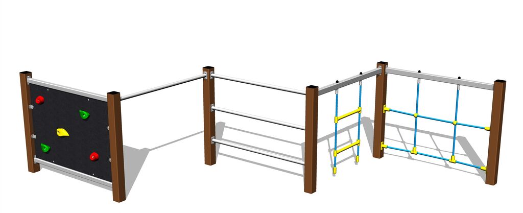 Kletternetz, Sprossenwand, Steilkletterwand, Reckstange, Seilleiter. Mehr Informationen