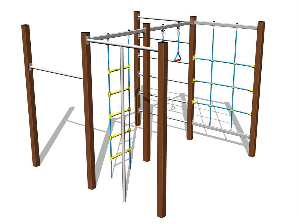 Die Seile und Netze sind aus Material HERKULES hergestellt (16 mm Seil aus Polypropylen mit einem inneren Stahlkern) und sind mit Kunststoff-Gelenken verbunden. Sämtliche Verbindungselemente sind verzinkt oder aus Edelstahl.