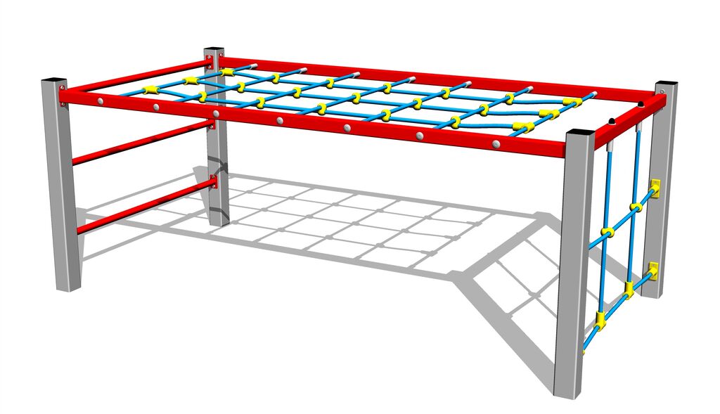 Die Seile und Netze sind aus Material HERKULES hergestellt (16 mm Seil aus Polypropylen mit einem inneren Stahlkern) und sind mit Kunststoff-Gelenken verbunden. Sämtliche Verbindungselemente sind verzinkt oder aus Edelstahl.