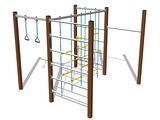 Die Seile und Netze sind aus Material HERKULES hergestellt (16 mm Seil aus Polypropylen mit einem inneren Stahlkern) und sind mit Kunststoff-Gelenken verbunden. Sämtliche Verbindungselemente sind verzinkt oder aus Edelstahl.