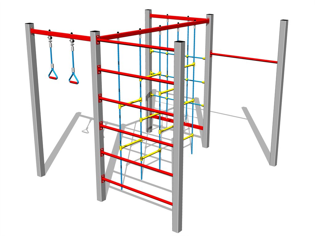 Kletterstange, Kletternetz, Sprossenwand, Steilkletterwand, Seilringe, Reckstange.