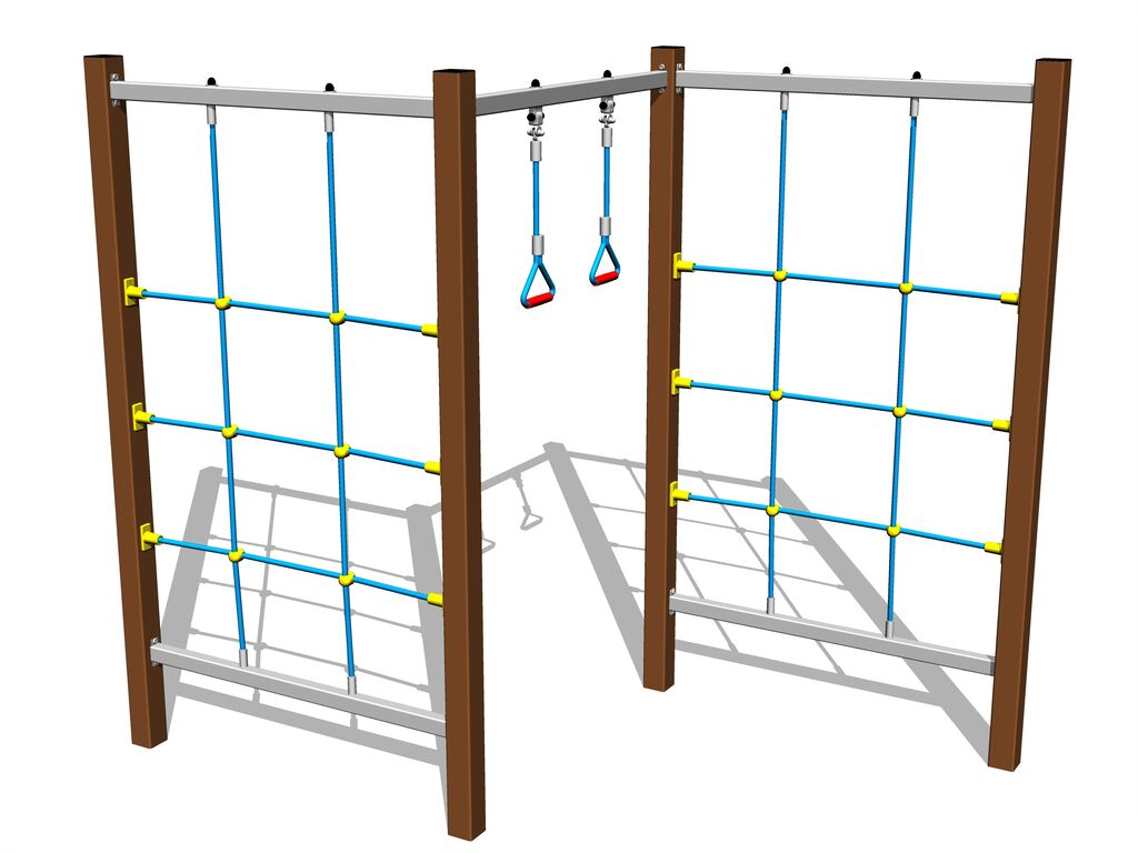 Die Seile und Netze sind aus Material HERKULES hergestellt (16 mm Seil aus Polypropylen mit einem inneren Stahlkern) und sind mit Kunststoff-Gelenken verbunden. Sämtliche Verbindungselemente sind verzinkt oder aus Edelstahl.