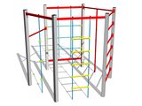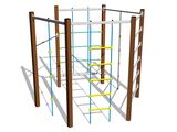 Die Seile und Netze sind aus Material HERKULES hergestellt (16 mm Seil aus Polypropylen mit einem inneren Stahlkern) und sind mit Kunststoff-Gelenken verbunden. Sämtliche Verbindungselemente sind verzinkt oder aus Edelstahl.