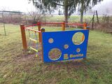 Die Seile, Kletterseil und Netze sind aus Material HERKULES hergestellt (16 mm Seil aus Polypropylen mit einem inneren Stahlkern) und sind mit Kunststoff-Gelenken verbunden. Die Ballwand wird aus hochwertigem HDPE-Kunststoff hergestellt (durchgefärbtes Hochdruckpolyethylen, das sich durch hohe Farbstabilität, UV-Beständigkeit und vor allem Sicherheit zeichnet, weil er bruchfest ist, so daSS88 keine Verletzungsgefahr für Kinder durch scharfe Bruchstücke besteht). Das gesamte Verbindungsmaterial ist verzinkt oder aus Edelstahl.