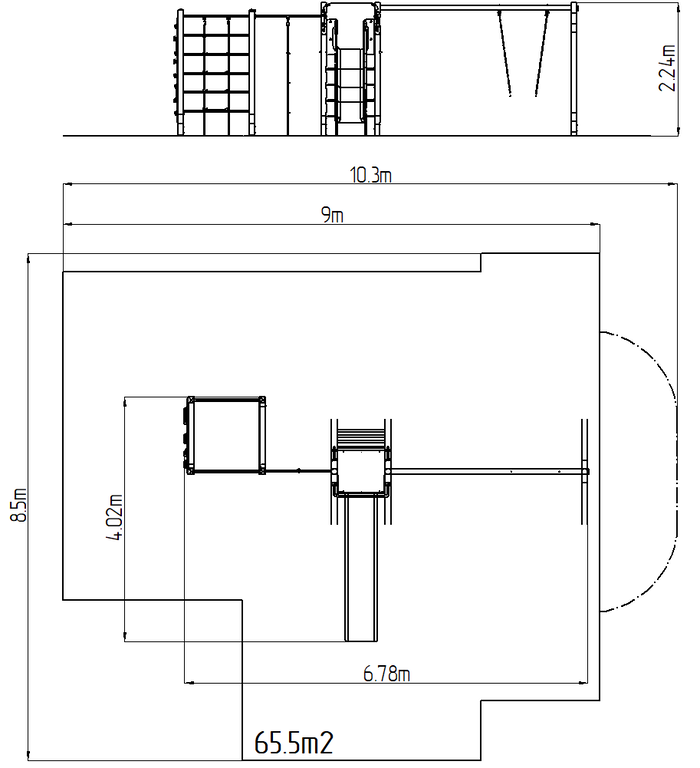 | Fallschutzfläche: | Gummi oder Kies 65,5 m2 |