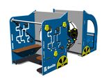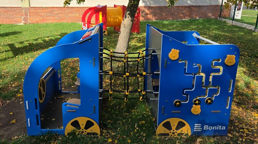 Alle anderen Teile bestehen aus hochwertigem Kunststoff HDPE (Hochdruck-, Vollfarben-Polyethylen, das sich durch hohe Farbechtheit, UV-Beständigkeit und vor allem durch Sicherheit auszeichnet, da es nicht zerbrechlich ist und keine Verletzungsgefahr für kinderscharfe Bruchstücke besteht). Kabeltunnel wird aus dem Material HERCULES hergestellt (16 mm Seil aus Polypropylen mit einem inneren Stahlkern) und sind mit Kunststoff-Gelenken verbunden. Alle Verbindungselemente sind aus verzinktem oder rostfreiem Stahl.