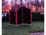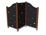 Die Kletterwand besteht aus witterungsbeständigem Sperrholz. Die Handgriffe bestehen aus Epoxidharz in Verbindung mit einer Quarzsandmischung, welche die Griffoberfläche griffig machen und eine hohe Farbbeständigkeit und Langlebigkeit garantieren. Sämtliche Verbindungselemente sind verzinkt oder aus Edelstahl.