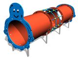 Kunststoffteile bestehen aus hochwertigem HDPE-Kunststoff (durchgefärbtes Hochdruckpolyethylen, das sich durch hohe Farbstabilität, UV-Beständigkeit und vor allem Sicherheit zeichnet, weil er bruchfest ist, so dass keine Verletzungsgefahr für Kinder durch scharfe Bruchstücke besteht). Kabeltunnel wird aus dem Material HERCULES hergestellt (16 mm Seil aus Polypropylen mit einem inneren Stahlkern) und sind mit Kunststoff-Gelenken verbunden. Die Kriechtunnels werden aus PE-Kunststoff (polyethylen, das sich durch hohe Farbstabilität und UV-Beständigkeit). Das gesamte Verbindungsmaterial ist verzinkt oder aus Edelstahl.