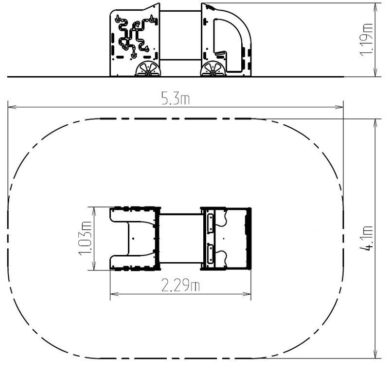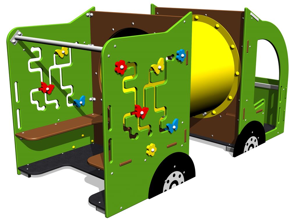 Die tragende Struktur des autos besteht aus Baustahl, der durch die Zinkbeschichtung vor Korrosion geschützt ist. Dies verlängert die Lebensdauer des Spielelements oder die Duplexbeschichtung mit Pulvereinbrennfarbe nach der RAL geschützt. Diese Strukturen sind in ein Betonbett eingebettet. Die gesamten Metallelemente sind auch verzinkt oder die Duplexbeschichtung mit Pulvereinbrennfarbe nach der RAL geschützt.