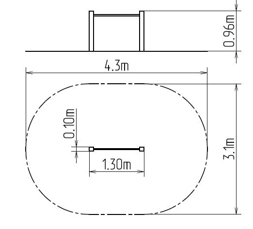 Doppelreckstange - metall, Fallhöhe 1 m, Als Fallschutzfläche genügt eine Grasfläche.