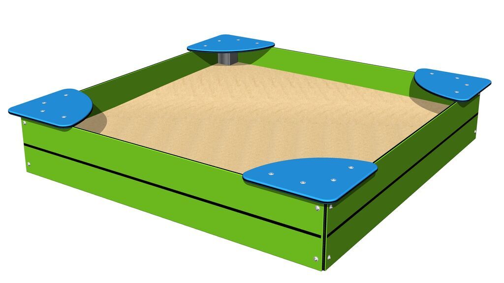 Der Sandkasten besteht aus HPL (Hochdruck Laminat, das sich durch hohe Farbstabilität, Kratzfestigkeit und Wasserbeständigkeit).