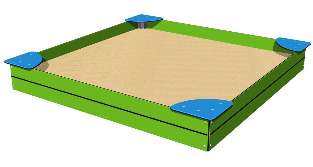 Der Sandkasten besteht aus HPL (Hochdruck Laminat, das sich durch hohe Farbstabilität, Kratzfestigkeit und Wasserbeständigkeit).