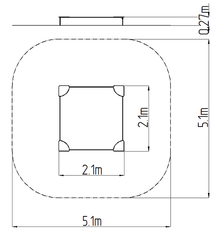 Abmessungen: 2,1 x 2,1 x 0,27 m