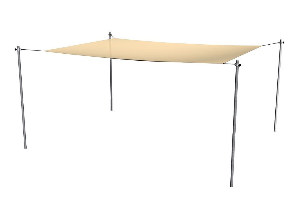 Die tragende Struktur der Sandkastenbeschattung besteht aus Konstruktionsstahl, der durch Feuerverzinkung vor Korrosion geschützt ist, was zu einer erheblichen Verlängerung der Lebensdauer des Spielelements führt. Diese Konstruktion ist in ein Betonbett eingebettet. Der Sandkastenschirm besteht aus UV-beständigem Polyesternetz und ist mit Ösen verseht. Die Sandkastenbeschattung ist wasserdurchlässig, alle Befestigungen sind aus verzinktem oder rostfreiem Stahl.