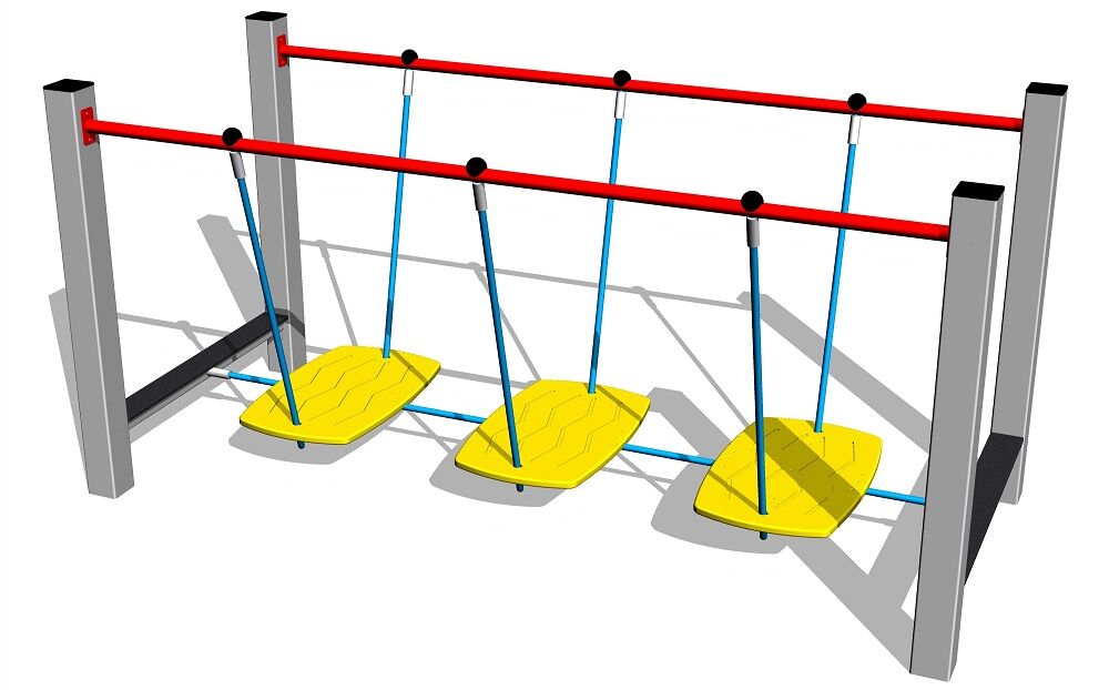 Seil-Balanciersteg mit Balken - metall, Länge 2 m, Als Fallschutzfläche genügt eine Grasfläche. Zur Auswahl stehen zwei Farbvarianten der Konstruktion – Braun und Silber. Mehr Informationen