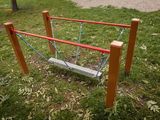 Seil-Balanciersteg mit Balken - metall, Länge 2 m, Als Fallschutzfläche genügt eine Grasfläche. Zur Auswahl stehen drei Farbvarianten der Konstruktion – Braun, Blau und Rot. Mehr Informationen