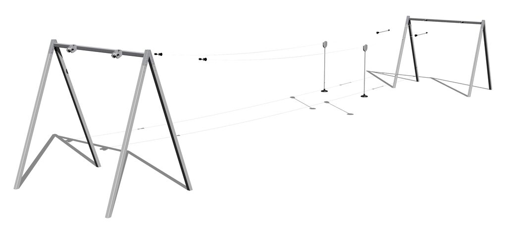 Seilbahn A-Form - Länge 20 m, Als Fallschutzfläche genügt eine Grasfläche. Mehr Informationen