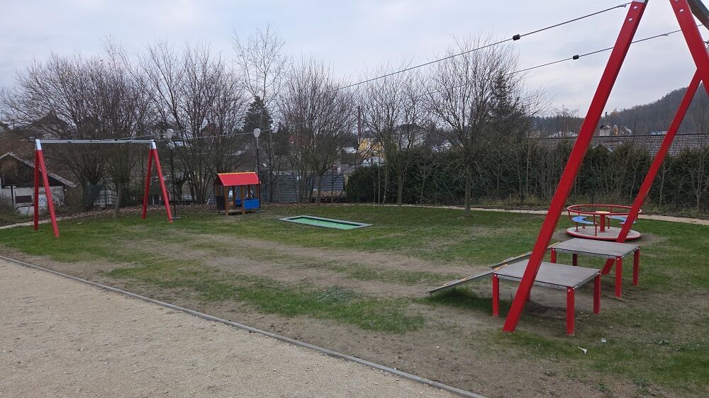 Seilbahn A-Form - Länge 20 m, Als Fallschutzfläche genügt eine Grasfläche. Mehr Informationen