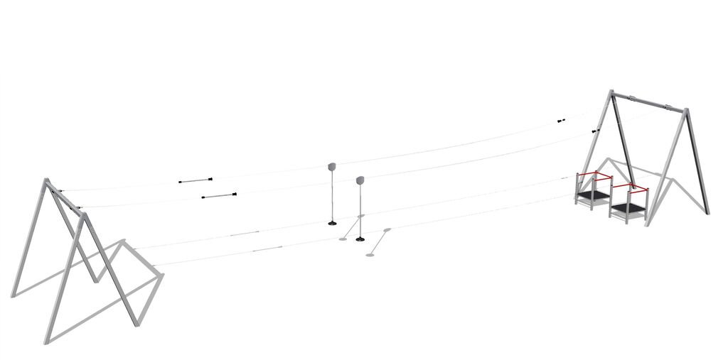Seilbahn A-Form - Länge 20 m, Als Fallschutzfläche genügt eine Grasfläche. Mehr Informationen