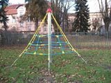 Seilpyramide - Höhe 2 m, Fallhöhe 1 m, Als Fallschutzfläche genügt eine Grasfläche. Mehr Informationen