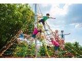 Seilpyramide - Höhe 5 m, Fallhöhe 1 m, Als Fallschutzfläche genügt eine Grasfläche.