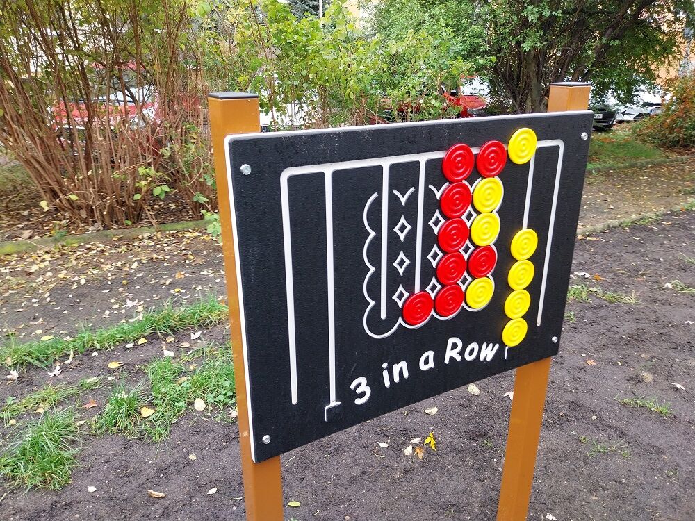 Die Tafel besteht aus hochwertigem HDPE-Kunststoff (durchgefärbtes Hochdruckpolyethylen, das sich durch hohe Farbstabilität, Beständigkeit gegen Verschrammen, UV-Beständigkeit und vor allem Sicherheit zeichnet, weil es bruchfest ist und so droht es den Kindern keine Verletzungsgefahr durch scharfe Bruchteile). Das gesamte Verbindungsmaterial ist verzinkt oder aus Edelstahl.