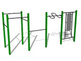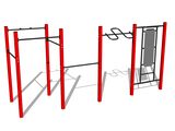 Die Tragkonstruktion der Workout-Kombination besteht aus Baustahl, die gegen Korrosion mit Zinkbeschichtung geschützt wird oder die Duplexbeschichtung mit Pulvereinbrennfarbe nach der RAL geschützt. Alle andere Metallelemente z.B. Handgriffe, Barren, usw. werden auch mit verzinkt oder die Duplexbeschichtung mit Pulvereinbrennfarbe nach der RAL geschützt, beziehungsweise können die Elemente auf Wunsch des Bestellers in Edelstahl ausgefertigt werden.