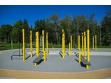 Die Tragkonstruktion der Workout-Kombination besteht aus Baustahl, die gegen Korrosion mit Zinkbeschichtung geschützt wird oder die Duplexbeschichtung mit Pulvereinbrennfarbe nach der RAL geschützt. Alle andere Metallelemente z.B. Handgriffe, Barren, usw. werden auch mit verzinkt oder die Duplexbeschichtung mit Pulvereinbrennfarbe nach der RAL geschützt, beziehungsweise können die Elemente auf Wunsch des Bestellers in Edelstahl ausgefertigt werden.