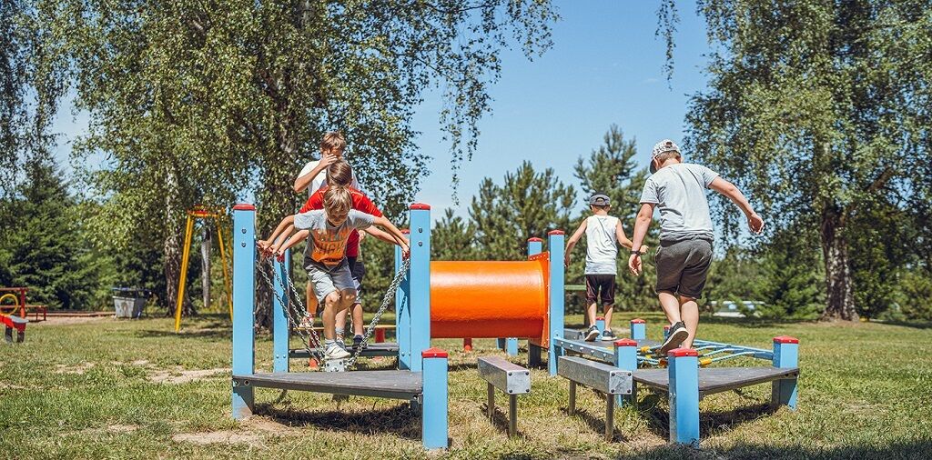 Diese Konstruktionen sind im Beton verankert. Die gesamten Metallelemente sind auch verzinkt oder die Duplexbeschichtung mit Pulvereinbrennfarbe nach der RAL geschützt. Die Seile und Netze sind aus Material HERKULES hergestellt (16 mm Seil aus Polypropylen mit einem inneren Stahlkern) und sind mit Kunststoff-Gelenken verbunden. Die Kriechtunnels werden aus Fiberglas hergestellt, der UV-beständig ist und der sich durch hohe Farbstabilität zeichnet. Die Stepperplatten bestehen aus hochwertigem HDPE-Kunststoff (durchgefärbtes Hochdruckpolyethylen, das sich durch hohe Farbstabilität, UV-Beständigkeit und vor allem Sicherheit zeichnet, weil es bruchfest ist und so droht es keine Verletzungsgefahr durch scharfe Bruchteile). Die Plattform bestehen aus HPL (Hochdruck Laminat, das sich durch hohe Farbstabilität, Kratzfestigkeit und Wasserbeständigkeit). Das gesamte Verbindungsmaterial ist verzinkt oder aus Edelstahl.