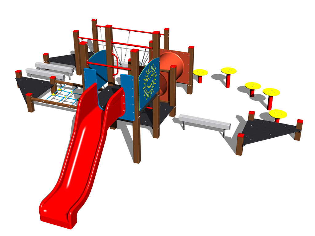 Übungspfad SD102K - metall, Fallhöhe 1 m, Als Fallschutzfläche genügt eine Grasfläche. Zur Auswahl stehen drei Farbvarianten der Konstruktion – Braun, Blau und Rot. Mehr Informationen