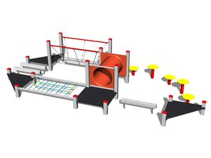 Übungspfad SD105K - metall, Fallhöhe 1 m, Als Fallschutzfläche genügt eine Grasfläche. Zur Auswahl stehen drei Farbvarianten der Konstruktion – Braun, Blau und Rot. Mehr Informationen