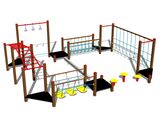 Die Seile und Netze sind aus Material HERKULES hergestellt (16 mm Seil aus Polypropylen mit einem inneren Stahlkern) und sind mit Kunststoff-Gelenken verbunden. Die Plattform bestehen aus HPL (Hochdruck Laminat, das sich durch hohe Farbstabilität, Kratzfestigkeit und Wasserbeständigkeit). Die Stepperplatten bestehen aus hochwertigem HDPE-Kunststoff (durchgefärbtes Hochdruckpolyethylen, das sich durch hohe Farbstabilität, UV-Beständigkeit und vor allem Sicherheit zeichnet, weil es bruchfest ist und so droht es keine Verletzungsgefahr durch scharfe Bruchteile). Alle Verbindungselemente sind verzinkt oder aus Edelstahl.