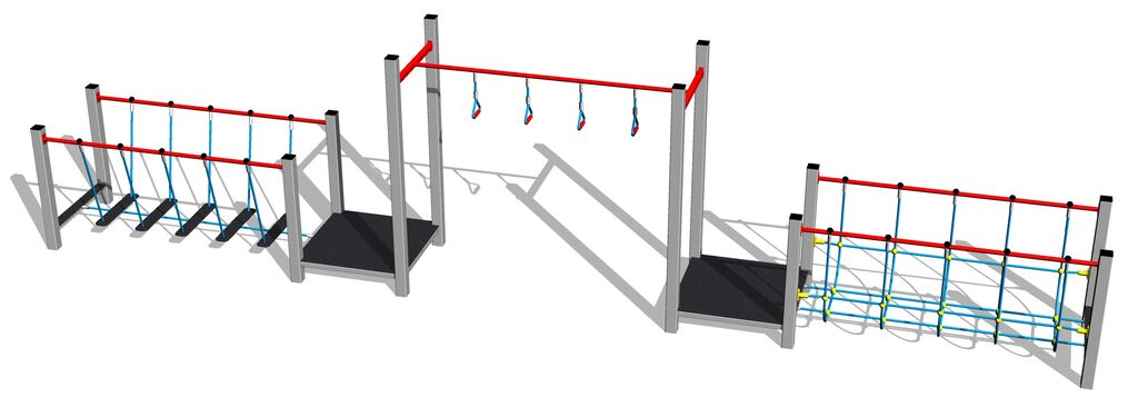 Übungspfad - metall, Fallhöhe 1 m. Als Fallschutzfläche genügt eine Grasfläche. Zur Auswahl stehen zwei Farbvarianten der Konstruktion – Braun und Silber. Mehr Informationen