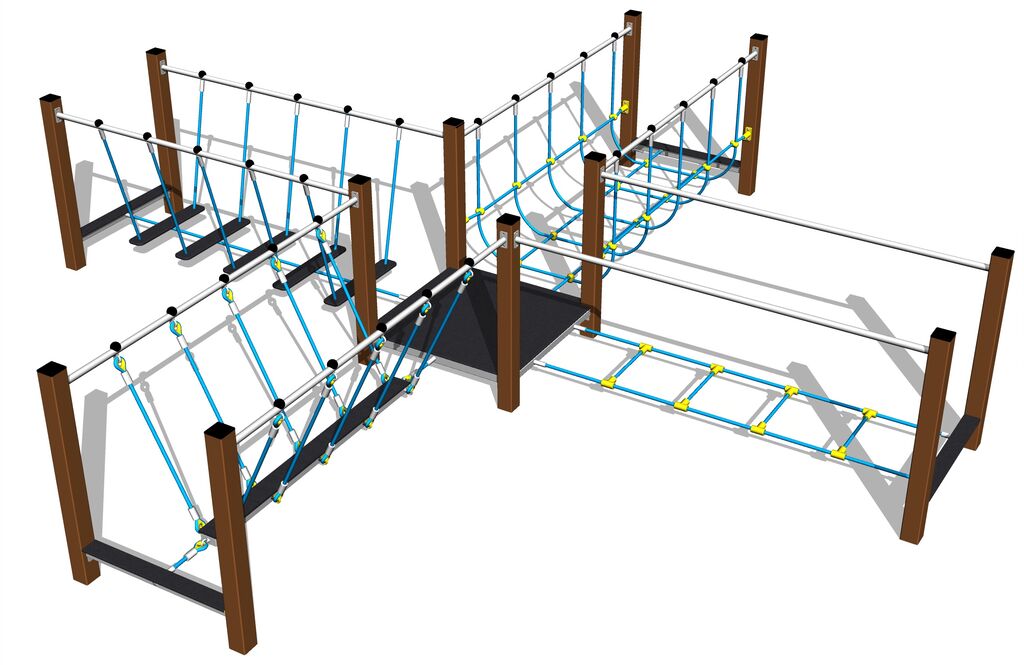 Übungspfad - metall, Fallhöhe 1 m. Als Fallschutzfläche genügt eine Grasfläche. Zur Auswahl stehen zwei Farbvarianten der Konstruktion – Braun und Silber. Mehr Informationen