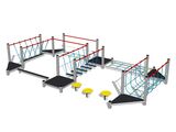 Übungspfad - metall, Fallhöhe 1 m. Als Fallschutzfläche genügt eine Grasfläche. Zur Auswahl stehen zwei Farbvarianten der Konstruktion – Braun und Silber. Mehr Informationen