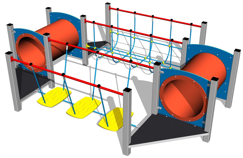 Übungspfad - metall, Fallhöhe 1 m. Als Fallschutzfläche genügt eine Grasfläche. Zur Auswahl stehen zwei Farbvarianten der Konstruktion – Braun und Silber. Mehr Informationen
