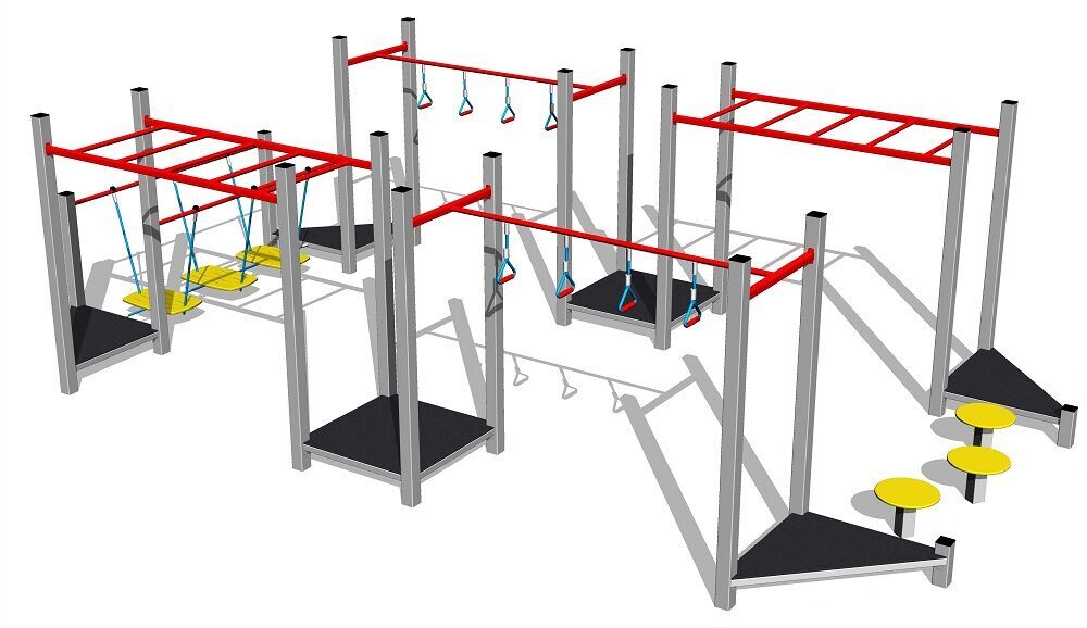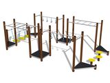 Übungspfad - metall, Fallhöhe 1 m. Als Fallschutzfläche genügt eine Grasfläche. Zur Auswahl stehen zwei Farbvarianten der Konstruktion – Braun und Silber. Mehr Informationen