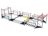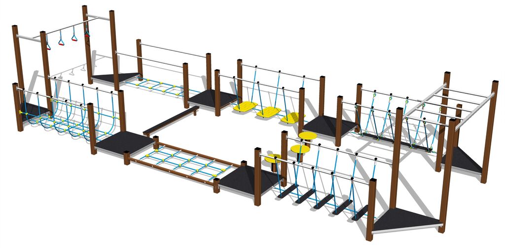Übungspfad - metall, Fallhöhe 1 m. Als Fallschutzfläche genügt eine Grasfläche. Zur Auswahl stehen zwei Farbvarianten der Konstruktion – Braun und Silber. Mehr Informationen
