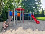 3x Turm, Dach, Rutsche, Reckstangenaufstieg mit Haltegriffen, Seilbrücke, Kriechtunnel zwischen Türmen, Feuerwehrstange, Steilkletterwand mit Handgriffen, 6x Barriere aus HDPE. Mehr Informationen