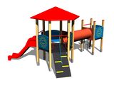 2x Turm, Dach, Rutsche, Kriechtunnel zwischen Türmen, Steilaufstieg mit Seil, 5x Barriere aus HDPE. Mehr Informationen