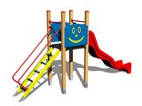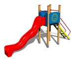 Turm, Rutsche, 2x Barriere, Steilaufstieg mit Metallhaltegriffen. Mehr Informationen