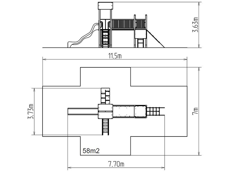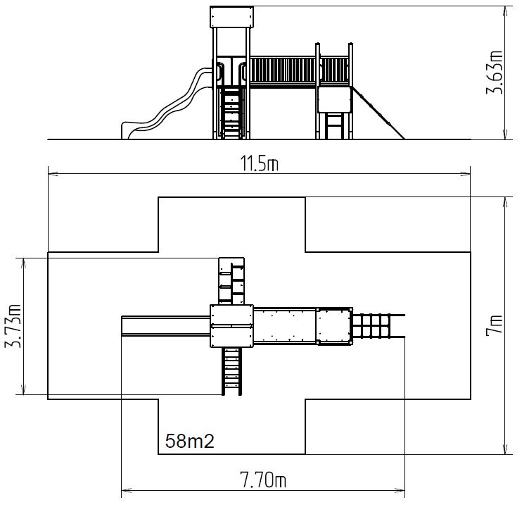 | Fallschutzfläche: | Gummi oder Kies 58 m2 |