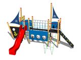 2x Turm, Rutsche, Metallsperre im Holzrahmen, 2x Mast mit Fahne, Zeichentafel, Steilaufstieg mit Seil, Brücke mit Seilgeländern, Steilkletternetz, Anker, Ruder, Barriere Bullauge,2x Barriere aus HDPE. Mehr Informationen