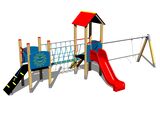 Sitz- und Schwenkgelenke sind nicht Teil der Schaukel. Es ist notwendig, einen Sitzplatz (1 Stück) nach Wahl und Drehgelenke (2 Stück) zu kaufen. 2x Turm, Dach in "A" form, Rutsche, 3x Barriere aus HDPE, Leiteraufstieg mit Metallsprossen, Seilbrücke, Steilaufstieg mit Seil, Metallbalken. Mehr Informationen
