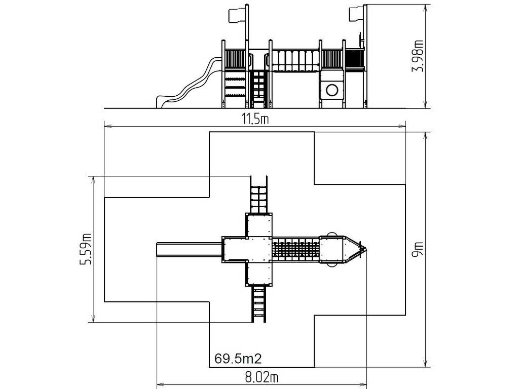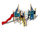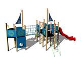 6x Turm, Rutsche, 2x Mast mit Fahne, Steilkletternetz, Rechentafel, Steilaufstieg mit Metallhaltegriffen, Ruder, Seilbrücke, 2x Barriere Bullauge, 10x Barriere aus HDPE. Mehr Informationen