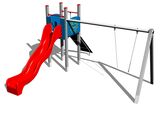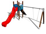 Sitz- und Schwenkgelenke sind nicht Teil der Schaukel. Es ist notwendig, einen Sitzplatz (1 Stück) nach Wahl und Drehgelenke (2 Stück) zu kaufen. Turm, Rutsche, 2x Barriere, Steilaufstieg mit Seil, Metallbalken. Mehr Informationen