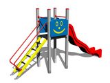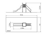 Turm, Rutsche, 2x Barriere, Steilaufstieg mit Metallhaltegriffen. Mehr Informationen